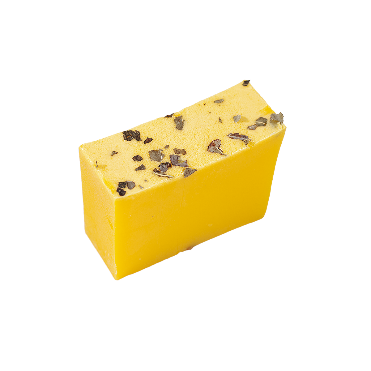 Sabonete feito com base glicerinada 100% vegetal, com óleo essencial de manjericão e aroma de Bergamota, a cor é da cúrcuma, o extrato de aloe vera e aveia e óleo de coco